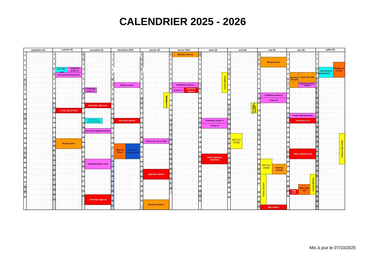 Planning compétition 2025/2026